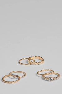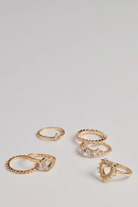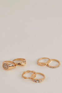 Showcase an elegant look with this five-pack ring set featuring multiple designs and rhinestone embellishments for some sparkle! Complete the look in rhinestone heels for a dressy occasion.