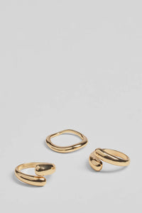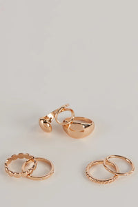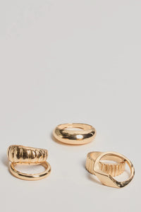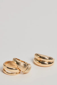Make a statement with this three-pack ring set in a chunky design for a bold style. Pair with a knit sweater.
