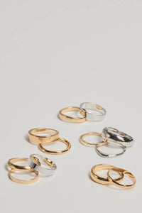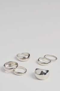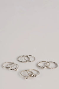 Accessorize your casual 'fits with this sleek and trendy ring set featuring six rings with thin and chunky designs. Style with a layered charm necklace!