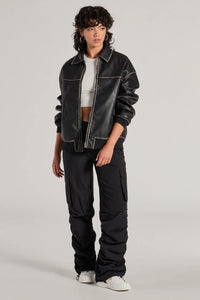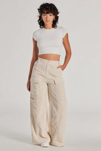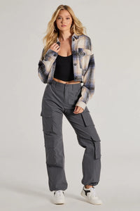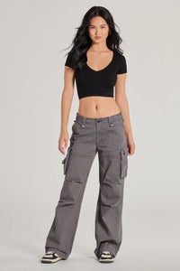 These mid-rise cargo pants have a good vibe energy! Featuring convenient pockets, a relaxed fit, and adjustable drawcord at the ankle. Pair with a faux leather jacket.