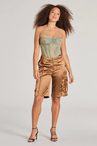 Perfect your look with trendsetter vibes satin cargo jorts. High-rise, relaxed fit, and plenty of pockets for all your essentials. Effortlessly chic and ready for anything!