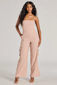 Casual And Chic Vibe Strapless Cargo Jumpsuit