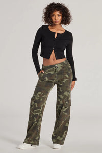 These camouflage cargo denim pants give every outfit an effortless vibe. Showcasing an on-trend mid-rise waist and functional pockets throughout the flattering bootcut leg.