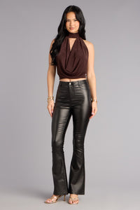 Sleek Business High-Rise Faux Leather Flare Pants