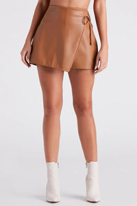 Cool-Girl Vibes Faux Leather Wrap Skort
