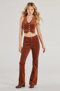 Dive into retro vibes with these chic corduroy high-rise flare pants. Featuring a flattering fit and classic pockets, they're your go-to for effortless style.