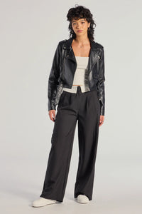 Dive into style with ready for glam faux leather pants. Featuring a sleek mid-rise, straight-leg fit, and classic five-pocket design, these pants are your new go-to for effortless chic.