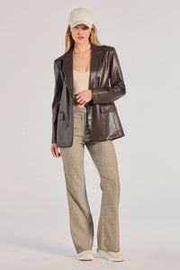In these faux leather pants, you'll be walking the walk of cool-effortless style! They feature a flattering high-rise waist and straight-leg silhouette on coated faux leather fabric that offers a sleek look for workwear or everyday 'fits. Complete the look in a smooth bodysuit and block heels.