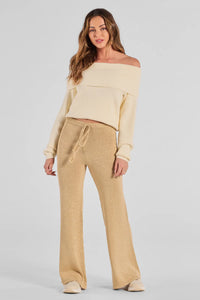 Get cozy in the luxe lurex knit pants. With a mid-rise drawstring waist and straight-leg fit, these pants are your go-to for effortless style and comfort.