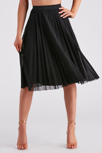 You'll be totally charming in this midi skirt perfect for creating unique party outfits! The skirt features an elasticized high-rise waist, and all-over pleating, and is composed of mesh fabric with a stretchy knit lining. Complete the look with a chic bodysuit and heels!