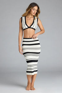Flirty Fun High Rise Striped Knit Midi Skirt