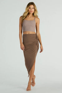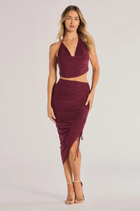 A high-rise bodycon midi skirt ready for dinner and cocktails with the girls! It features a smooth ruched silhouette with an adjustable drawstring that lets you customize the style. Pair with stiletto heels.