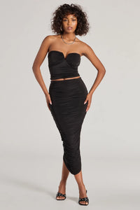 Bold Staple Ruched Asymmetrical Midi Skirt