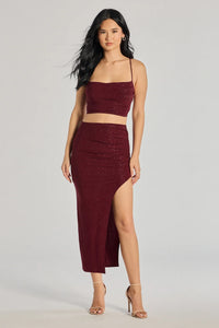 Catch this stylish midi skirt for the ultimate vacation look! Featuring a high-rise elasticized waist and a flattering bodycon silhouette with a sultry side slit along the midi-length hem. Complete the look with the matching top.