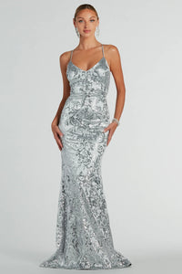 Francesca Lace-Up Mermaid Sequin Formal Dress