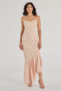 Brinley Lace Chiffon Asymmetric Mermaid Dress