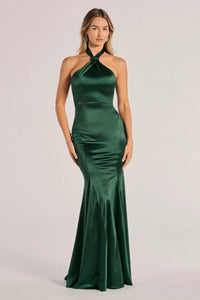 Hallie Satin Sleeveless Halter Mermaid Dress