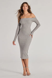 Perfect Curves Ribbed Knit Off-The-Shoulder Midi Dress