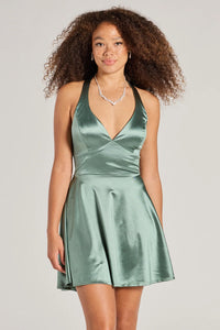 Everyone will watch as you walk in wearing this sleeveless mini dress to the school dance or party! Made from smooth lined knit fabric, it's perfect for any occasion. With its flattering V-neckline and shoulder straps, this dress offers a stunning A-line silhouette and a mini-length hem. Compliment your look with statement heels and a clutch.