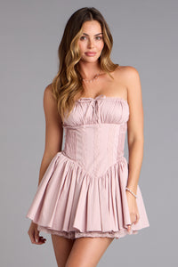 Whimsy in every stitch. With lace trims, corset details, and a floaty mini hem, this skater dress feels like it was made for fairy tales, flower fields, and falling in love (again).