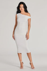 Easily Sultry Off-Shoulder Ruched Midi Dress