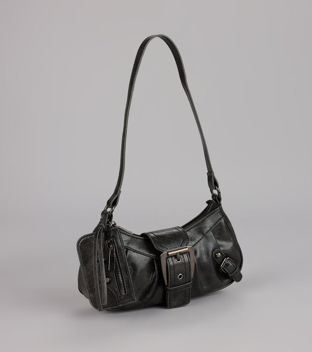 This trendy shoulder bag is designed with edgy buckle straps and a spacious interior for keeping your must-haves in. Perfect for everyday styling and occasions!