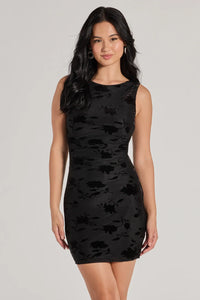 Create a chic night-out look with this bodycon mini dress designed with a stretchy knit fabric with a floral velvet burnout pattern. It features a sleeveless crew neckline, tank shoulder straps, and a short curve-hugging silhouette to flaunt your stunning figure.