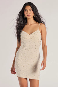 Delicate Glam Faux Pearl Sleeveless Mini Dress