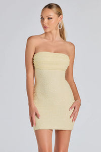 • Lena Strapless Bodycon Beaded Mesh Mini Dress
