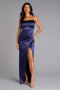 • Lola High Slit Satin Dress