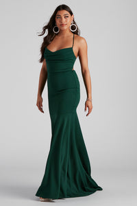 Bring the flirtatious flair to your fancy affair with the alluring details of the Lainey ruffled high slit long formal dress! Crafted from a sleek and stretchy knit fabric, she features a sleeveless V-neckline, bungee spaghetti straps that lead to a bold open back with a cross-back strappy design, a fitted bodice, a floor-length hem with a thigh-high front slit accented with a ruffled trim, and a slim-fit silhouette. Style this long dress with rhinestone statement earrings and metallic heels!