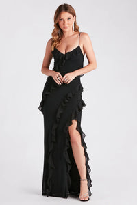 Lainey Ruffled High Slit Long Formal Dress