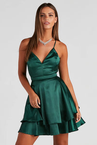 This dress brings the fun and the fashion. If you love a bold, playful look, explore our stylish short prom dresses or make an entrance in our stunning short wedding guest dresses in short and mini lengths.