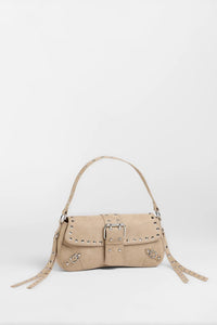 Buckle Up Faux Suede Studded Shoulder Bag