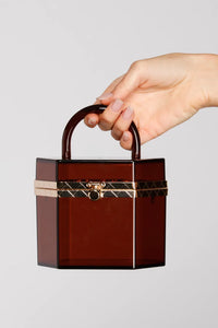 Start a trend with a purse that stands out! The purse features a top handle, a hexagon-shaped body with fasten closure, and a semi-transparent finish. Complete look with a form hugging bodycon and heels.