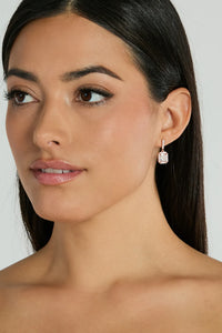 Radiate total glitzy goals in these gorgeous cubic zirconia earrings! They feature a short drop design with a thin bar post embellished with mini cubic zirconia stones and a hanging square-shaped cubic zirconia stone pendant with a mini stone outline. Include a post-back closure. Style with a dainty bracelet.
