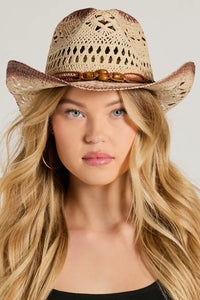 Boho Babe Out West Beaded Straw Cowboy Hat