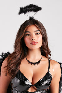 Be naughty or nice this Halloween using this marabou feather halo headband as part of your angel costume! It features a wired halo with a fab marabou feather trim attached to a satin ribbon headband. Complete your dark or sweet angel costume with feathered wings, a sexy dress, and gloves to attend a Halloween party or night-out event!