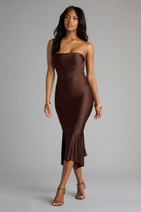 Effortless Flirt Tube Ruffled Midi Dress