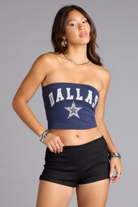 Bring the heat from kickoff to afterparty in this Dallas Cowboys graphic tube top. Fitted and stretchy, it’s your MVP piece for tailgates, concerts, or just serving sideline chic.