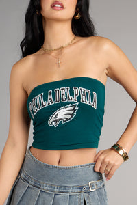 All eyes on you at kickoff—this tube top is a total score. Stretchy, body-hugging, and perfect for repping the Philadelphia Eagles with a little flirty twist.