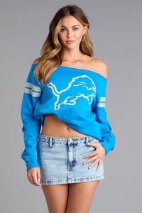 Kick back but keep it cute—this off-the-shoulder Detroit Lions pull-over top is cozy with a flirty twist. Bold graphics and a relaxed fit make it a must for game day and beyond.