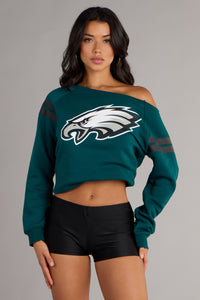 Serving cozy with a side of edge—this pull-over top brings that effortless off-duty vibe. Perfect for repping the Philadelphia Eagles while keeping it cute and comfy.