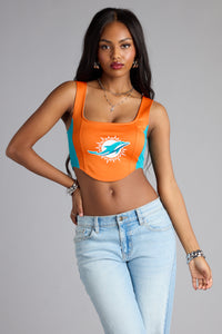 Serving sidelines sass—this lace-up tank top is the ultimate game day flex. Fitted and sporty, it’s perfect for repping the Miami Dolphins with a little edge.