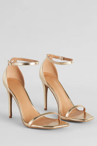 These classic faux leather stiletto heels are the perfect pick for your dressy events. They feature an open square toe with a thin strap, a thin adjustable ankle strap, a closed back, and a sleek stiletto heel. The heels are composed of a patent faux leather material with a subtle cushioned insole. Style with an envelope clutch.