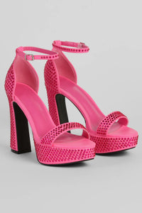 Elevate the shine and sparkle in these rhinestone block heels! These sparkly platform heels feature an open-toe design with a stylish ankle strap that goes with a closed-back zipper closure on a wide block heel. These party-ready heels are the perfect finishing touch with a cocktail dress for a wedding or a sexy club outfit for a GNO. Complement your rhinestone heels with matching jewelry and accessories for a post-worthy look.