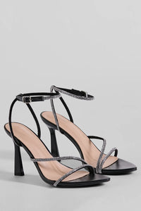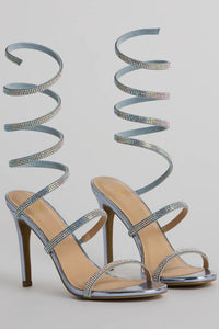 Step out to stand out in these rhinestone stiletto heels made to surprise everyone with your glamour! These stunning stiletto shoes feature an almond toe and rhinestone embellished straps for a touch of glamour. The unique spiral ankle design adds a modern twist. Complete the look with statement earrings.