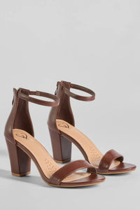 These basic short block heels are a definite must-have you need in your closet. They feature an open almond-shaped toe with a strap, an adjustable ankle strap, and a short block heel for comfortable wear. Style these heels with a midi dress and a boyfriend blazer for the perf workwear look.