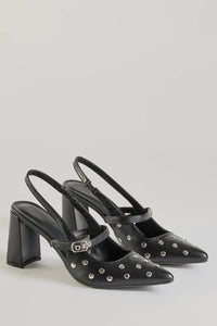 Chic Studded Faux Leather Sling-Back Pumps