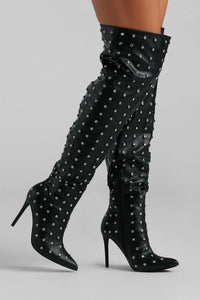 Glam Allure Rhinestone Faux Leather Over-The-Knee Boots